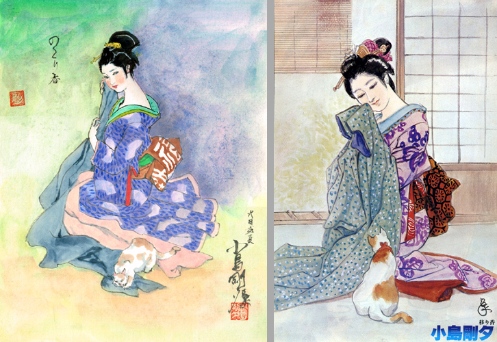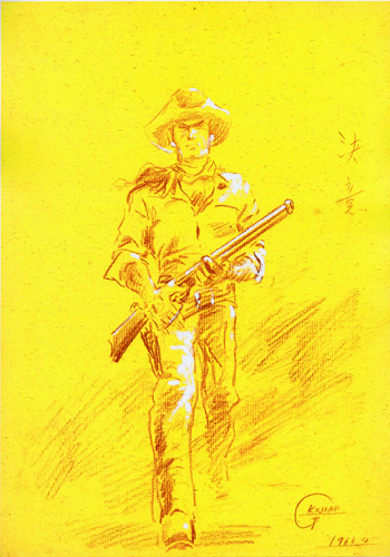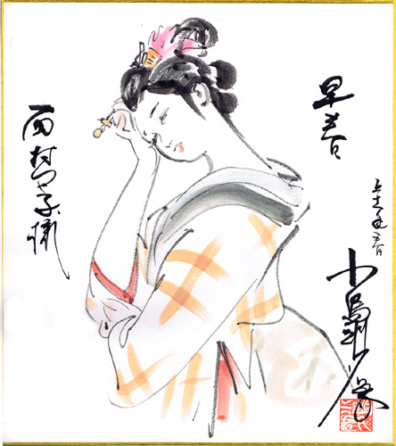 | ◇展示させていただいている数々の原画は「吉留(西村)つや子」氏からお借りし、コピーしたものです。 印刷と違った繊細な描線はコピーでもお分かりいただけると思います。 ◇ほとんどがコピーの原画ギャラリーですが、このたび2枚の色紙を入手いたしました。 「のこり香」は6号サイズで、一般的なサイン色紙(4号)よりかなり大きいです。 「戌年」と記載がありますので筆致から見て昭和57年頃描かれたものかと推測しています。 「猫と童女」は昭和52年の記載があります。(2016/07/07更新)◇額装された原画を入手しました。 平成2年3月頃の作品です。「武士の道」(2024/03/23更新) |
