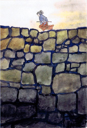 「石垣の上を走る武士」 |